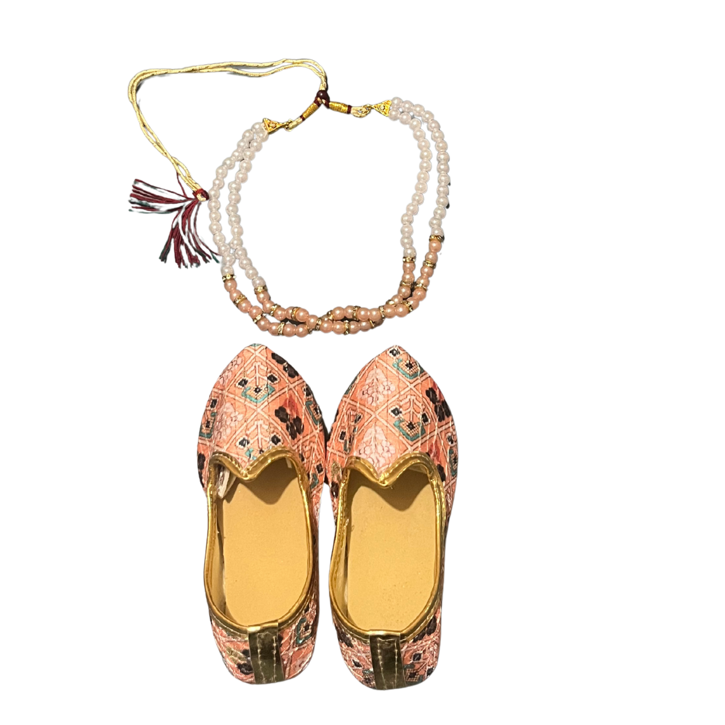 👣 Includes matching shoes & a pearl chain for a complete ethnic look