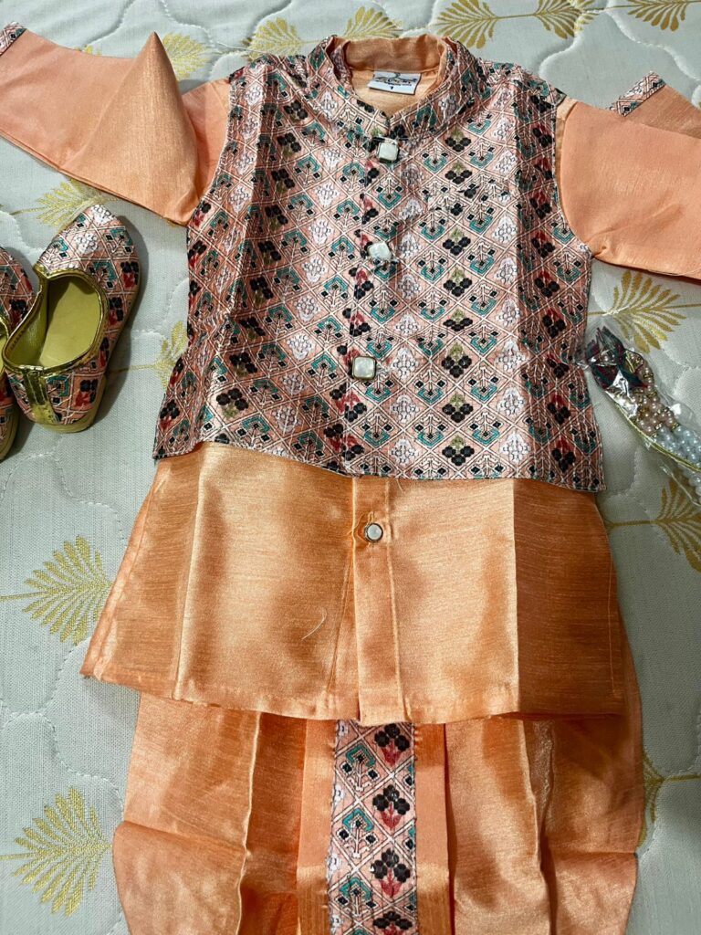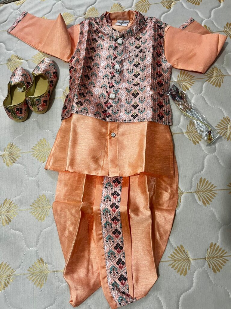 👕 Kurta & Dhoti: Soft cotton blend, gentle on skin