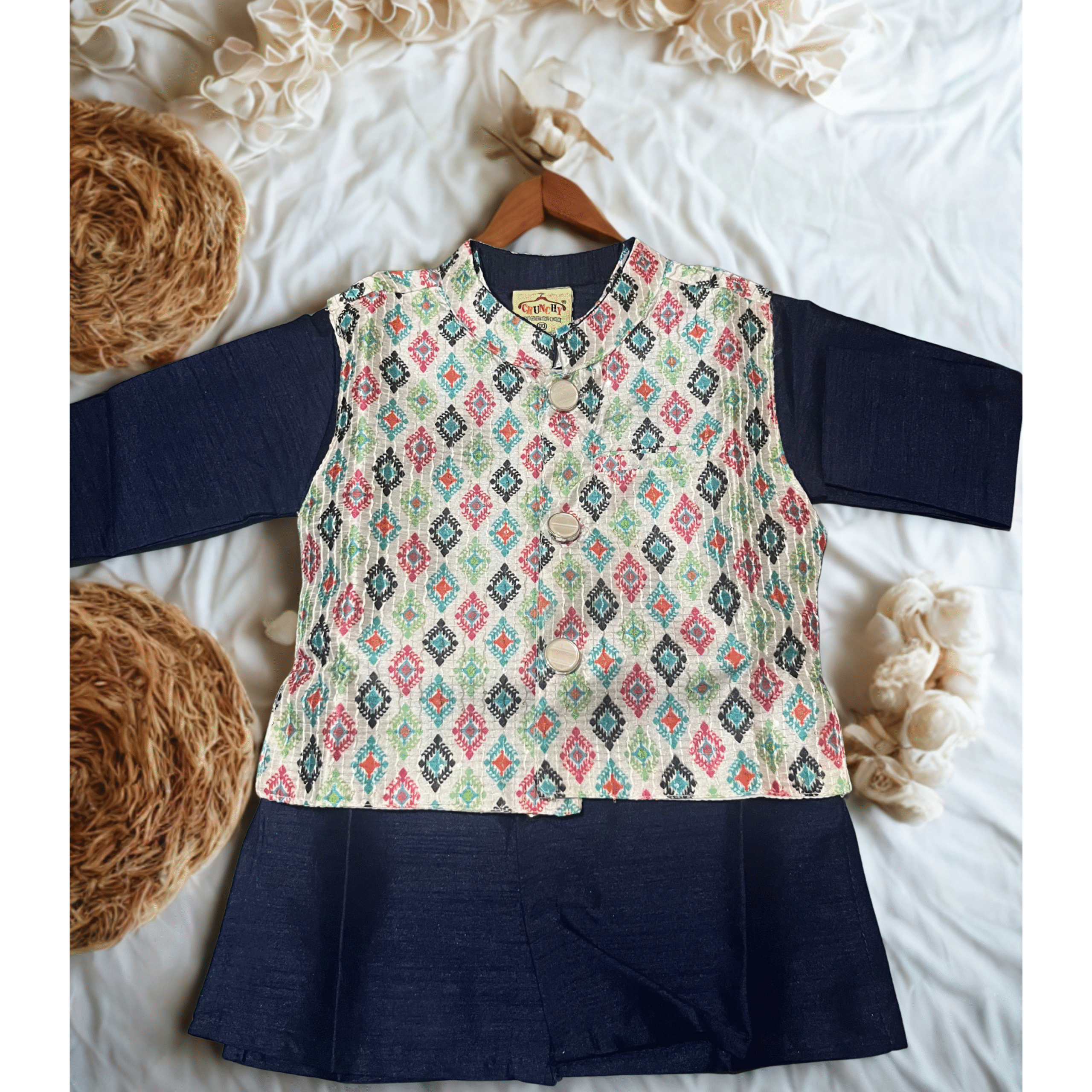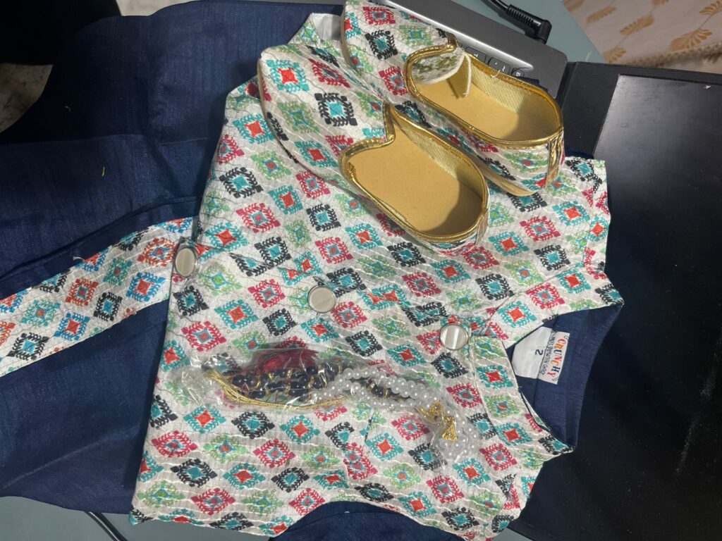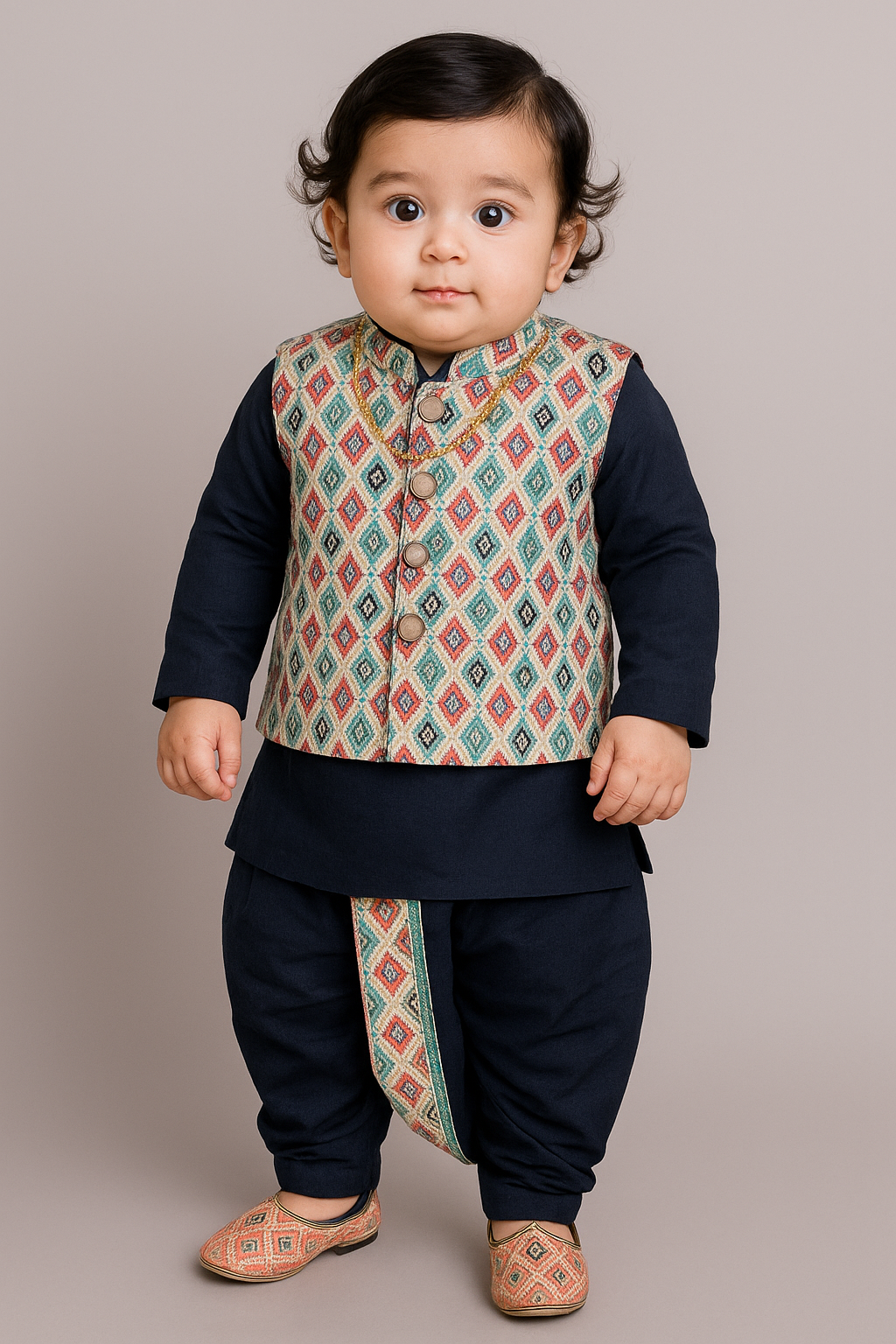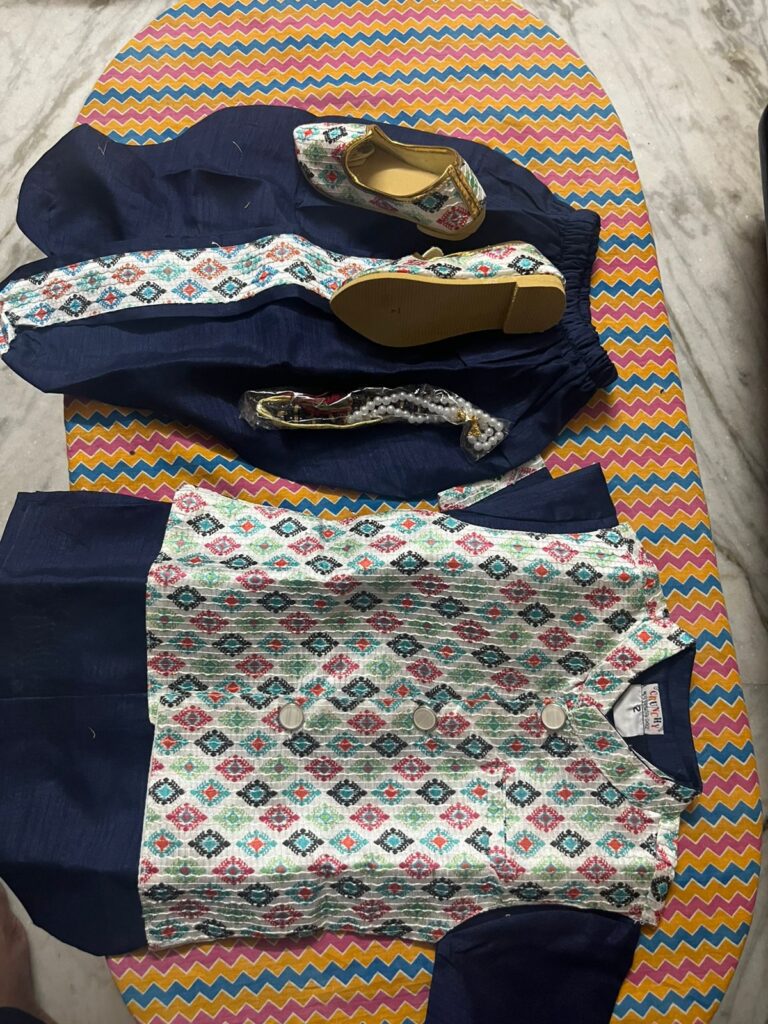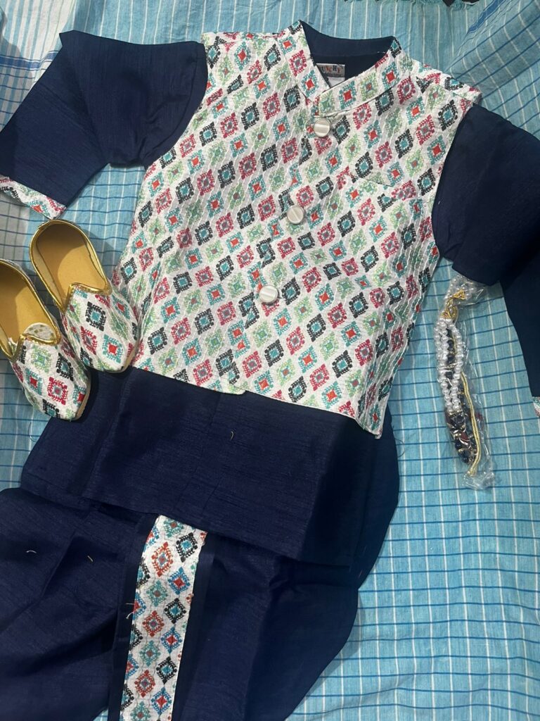 3 reviews for Blue – Baby Kurta Dhoti Set (0–12M) – With Shoes & Pearl Chain