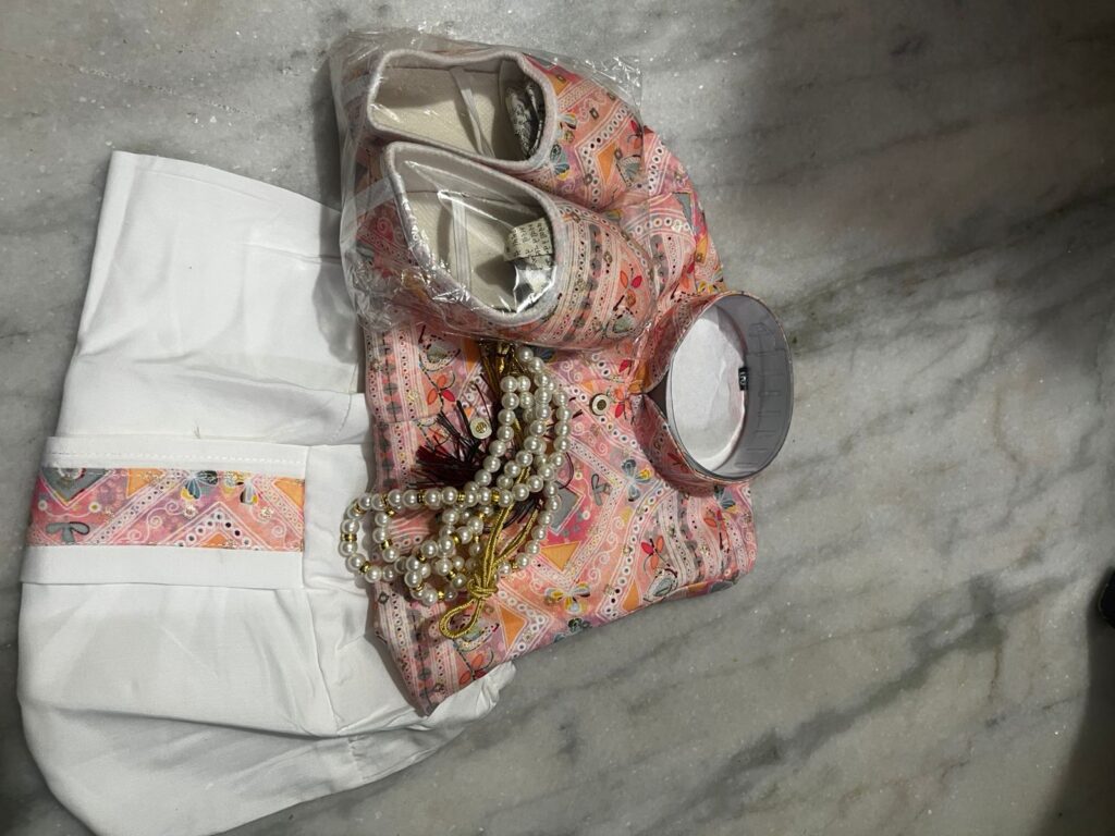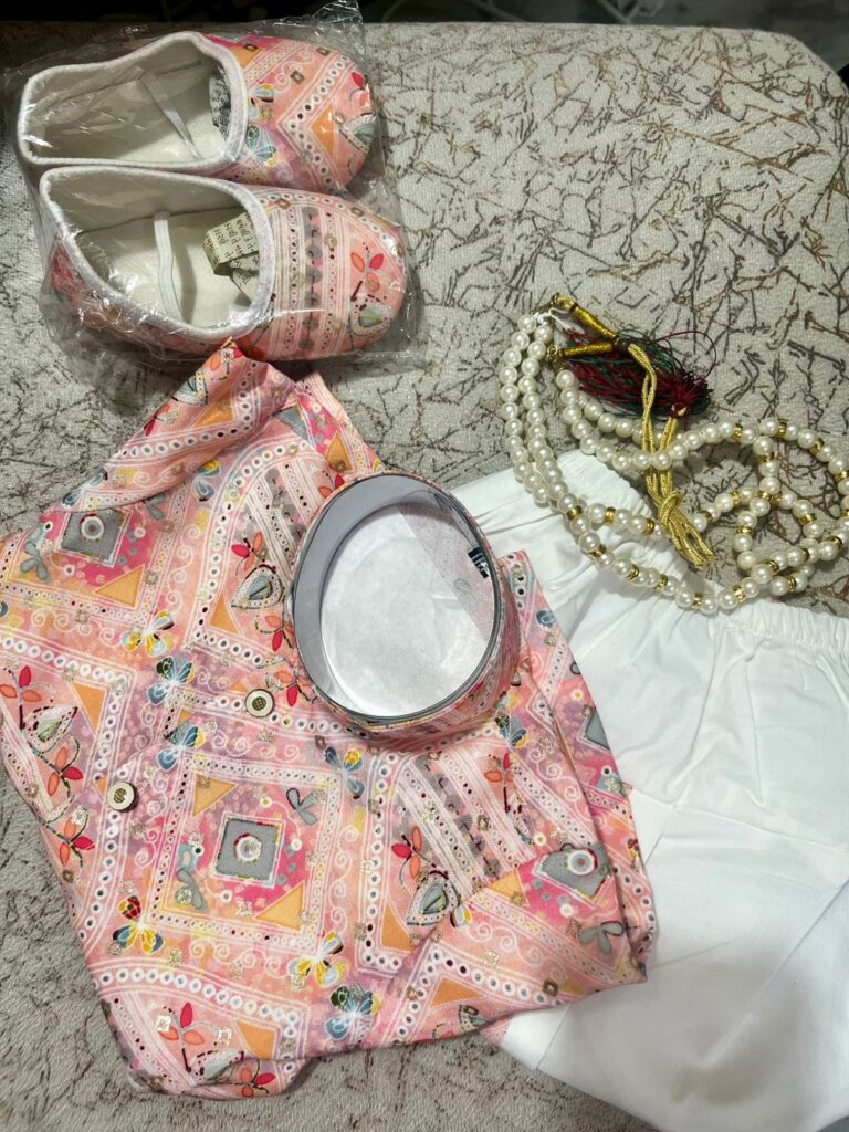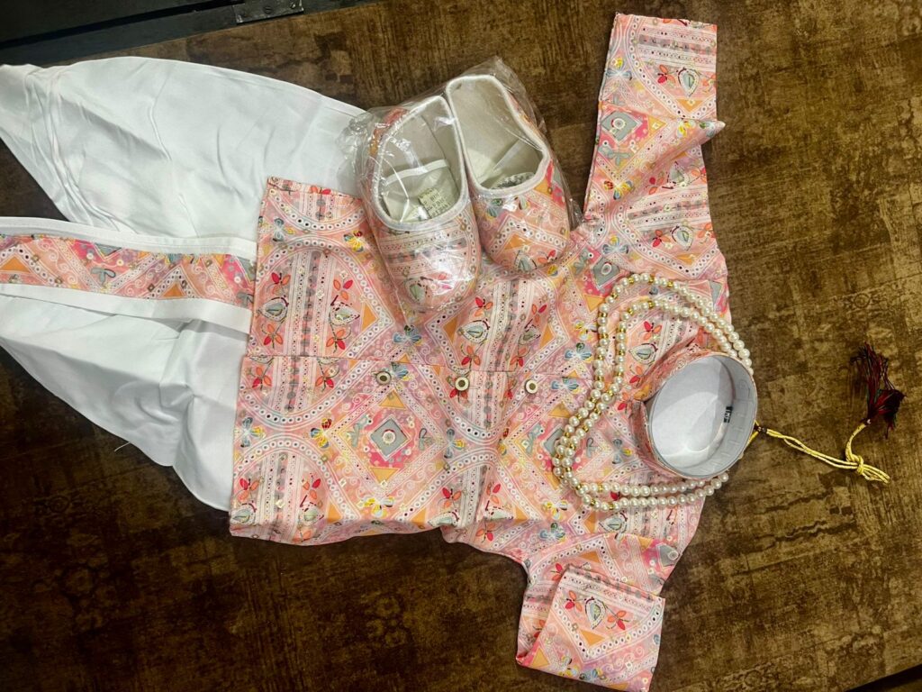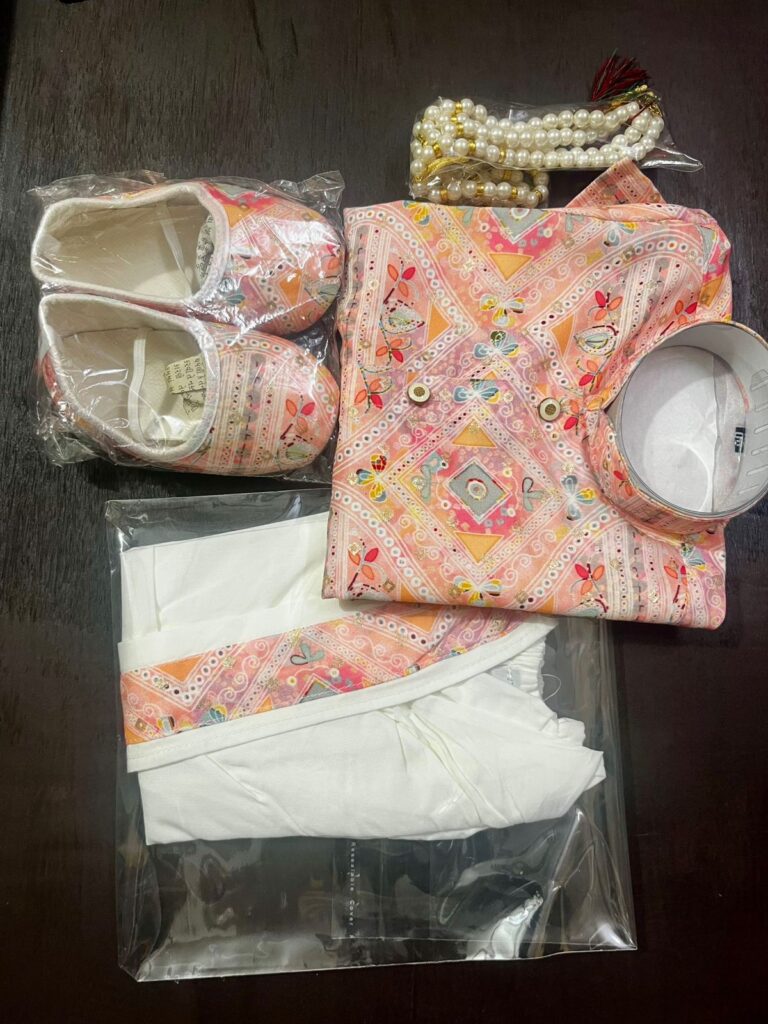 4 reviews for Light Pink- Baby Kurta Dhoti Set (0–12M) – With Shoes & Pearl Chain