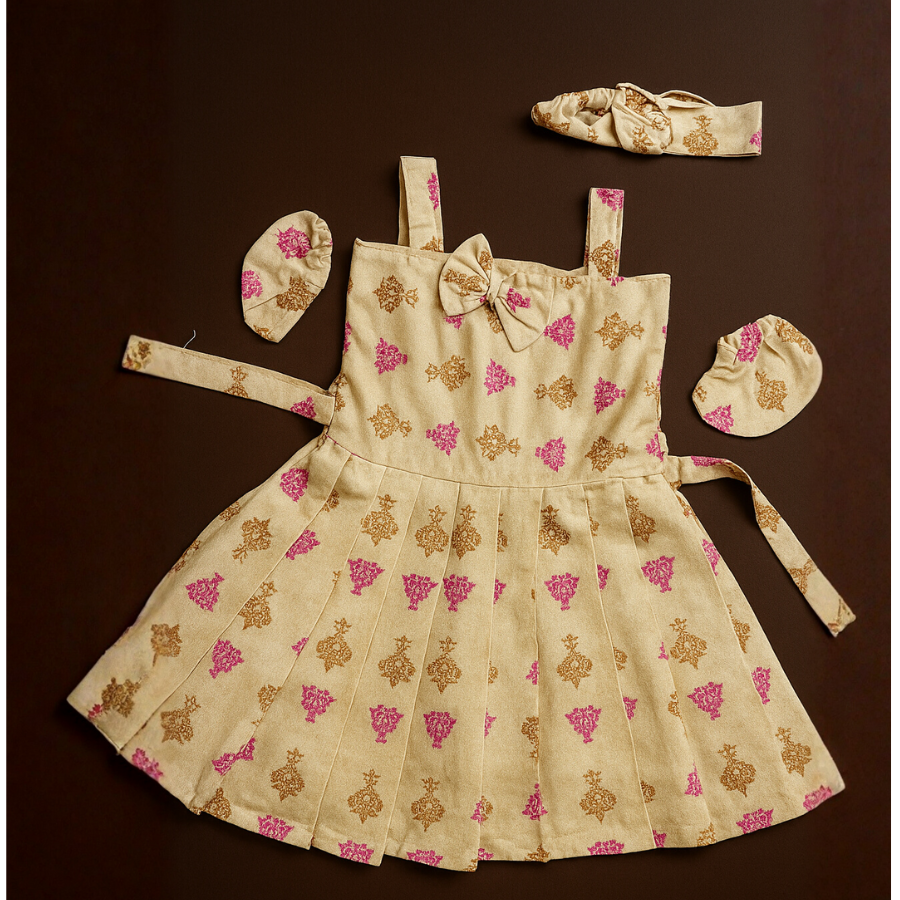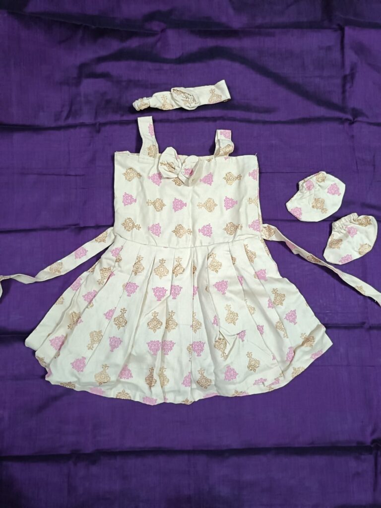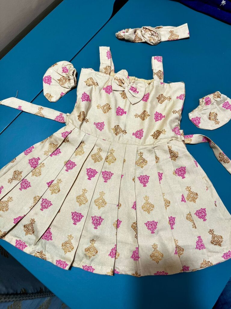 Tanvi – Baby Frock Set with Headband & Footcover/Socks