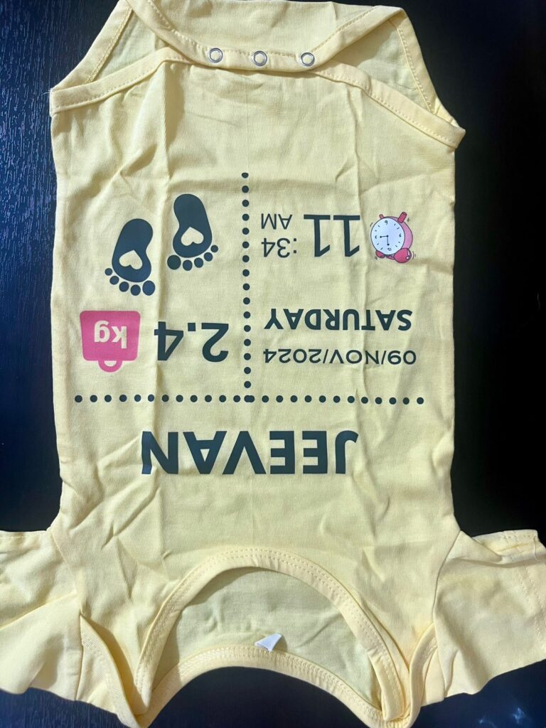 Because each dress is custom-printed with your baby’s personal details, it cannot be returned or resold. We only accept prepaid orders. Once payment is confirmed, we begin printing immediately.